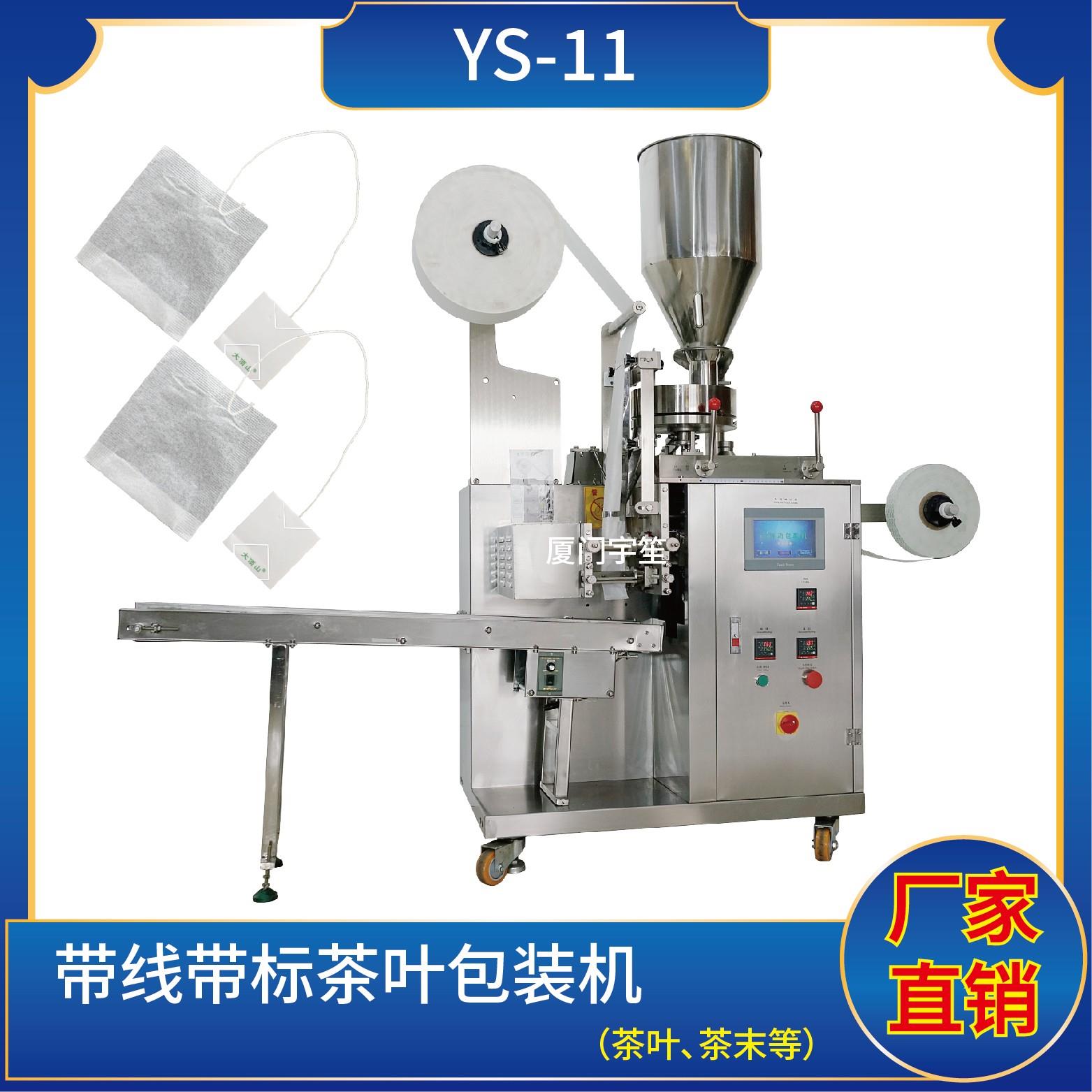 YS-11 新一代 掛線掛標(biāo)袋泡茶包裝機(jī)特 點(diǎn) 1、適用于碎茶、藥茶、咖啡、植物等類似產(chǎn)品的自動(dòng)包裝。2、包裝袋帶提線和吊牌,可自動(dòng)完成制袋、計(jì)量、充填、封合、分切及計(jì)數(shù)等功能。3、包裝材料:茶葉濾紙、棉線、標(biāo)簽紙。封口方式三邊封技術(shù)參數(shù)計(jì)量范圍:1 - 10 g(0.6 ~ 26 ml)制袋尺寸:長(zhǎng) ( L ) : 50 - 80 mm …