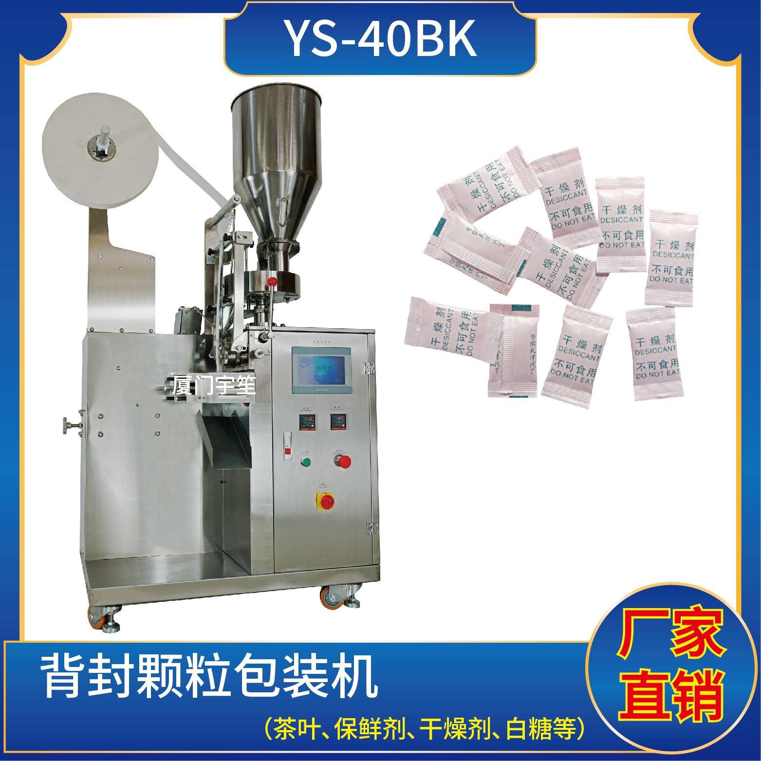 YS-40BK 背封顆粒自動包裝機特 點 1、適用于方便面行業(yè)湯包,干燥劑,沖劑,碎茶等小顆粒狀物品包裝。2、可自動完成制袋、計量、充填、封合、分切及計數(shù)等功能。3、包裝材料:茶葉濾紙、復(fù)合膜、無紡布。 封口方式:背封技術(shù)參數(shù) 計量范圍:10 - 40 g(0.6 ~ 33 ml)制袋尺寸:長 ( L ) : 40 - 110 mm …