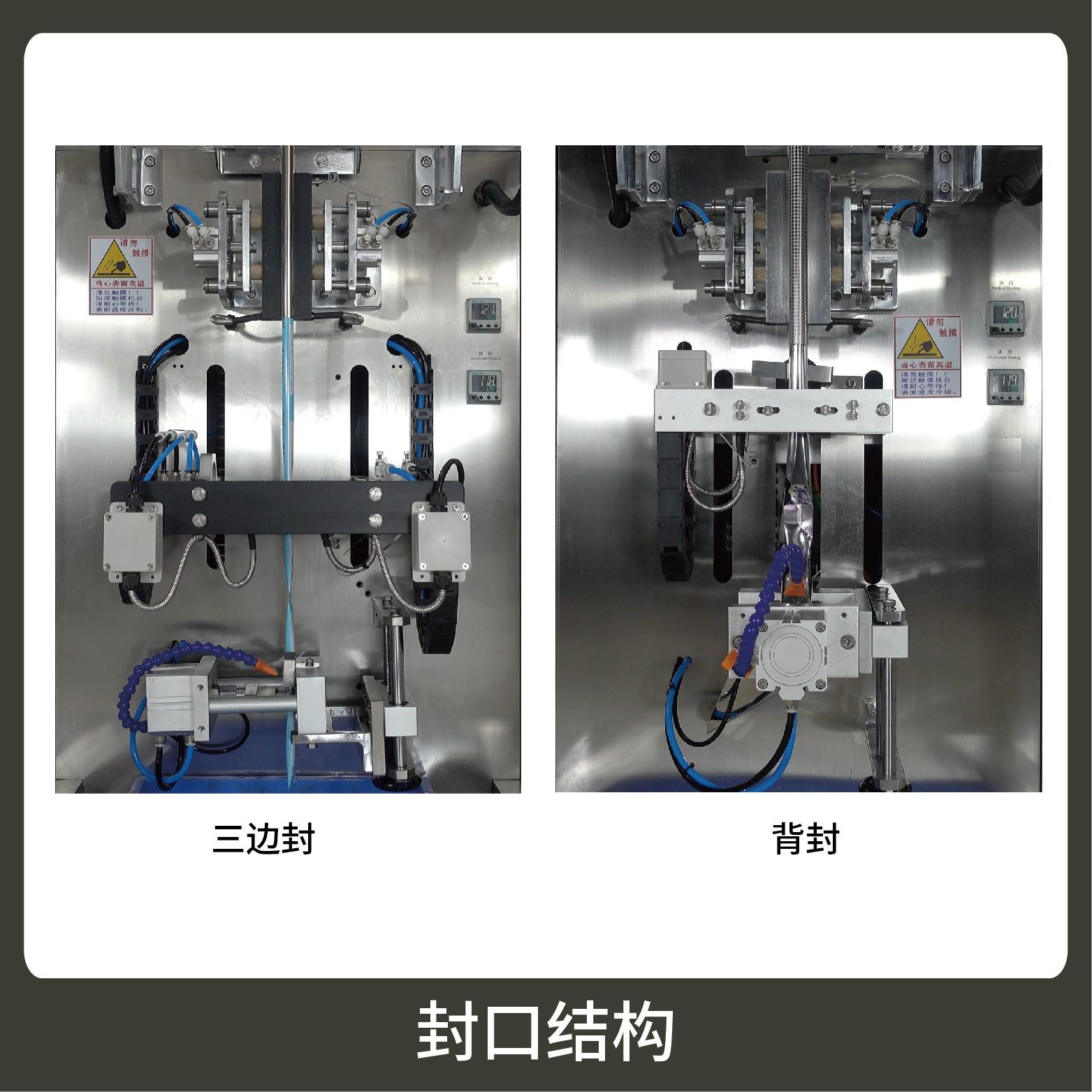 3、觸摸屏操作,PLC 控制,伺服電機(jī)控制袋長(zhǎng),性能穩(wěn)定、調(diào)整方便、檢測(cè)準(zhǔn)確。智能式溫控儀,PID調(diào)節(jié),保證將溫度的誤差范圍控制在1℃以?xún)?nèi)。