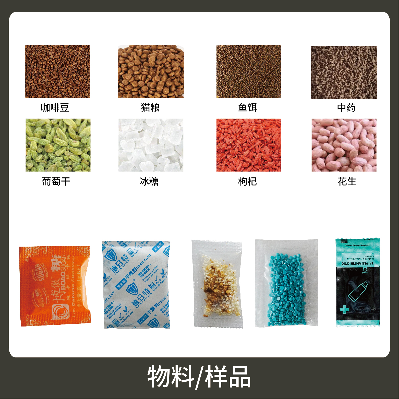 Suitable for the metering and packaging of small granular items such as various seasonings, TCM granules, desiccants, and instant granules.