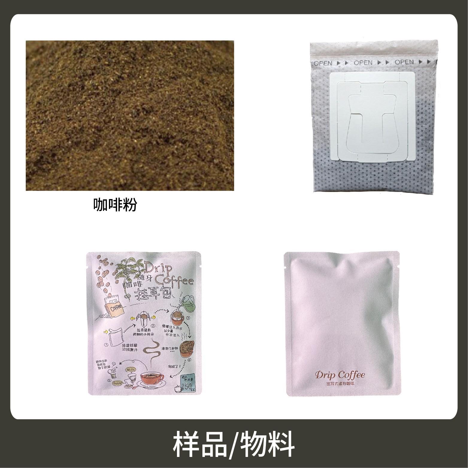 5、包裝材料:內(nèi)袋(玉米纖維、掛耳咖啡膜);外袋復(fù)合膜,如:純鋁,鍍鋁等預(yù)制袋。